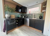 De dichte keuken is voorzien van een aanrechtblad waarin verwerkt een enkele RVS spoelbak. De keuken is voorzien van de navolgende inbouwapparatuur: RVS- afzuigkap, 4-pits gaskookplaat, vaatwasser en combimagnetronoven.