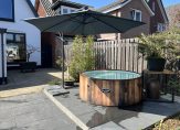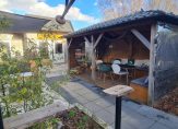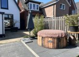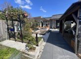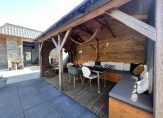De op het oosten gelegen achtertuin is voorzien van bestrating, borders, overkapping, zonneterras en een jacuzzi. Achter in de tuin staat een vrijstaand stenen atelier/werkruimte, welke ideaal is voor een bedrijfsvoering/hobby aan huis. Het atelier / de werkruimte is voorzien van volledige isolatie, elektra, opslagruimte, werkbanken, zithoek en een houtkachel.