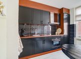 De keuken is ingericht met een complete inbouwkeuken en een kunststof aanrechtblad met dubbele RVS-spoelbak. Aan inbouwapparatuur vindt u onder andere een RVS-afzuigkap, koelkast, 3-laden vriezer, 4-pits keramische kookplaat, combimagnetron, vaatwasser en een elektrische boiler (10 liter).