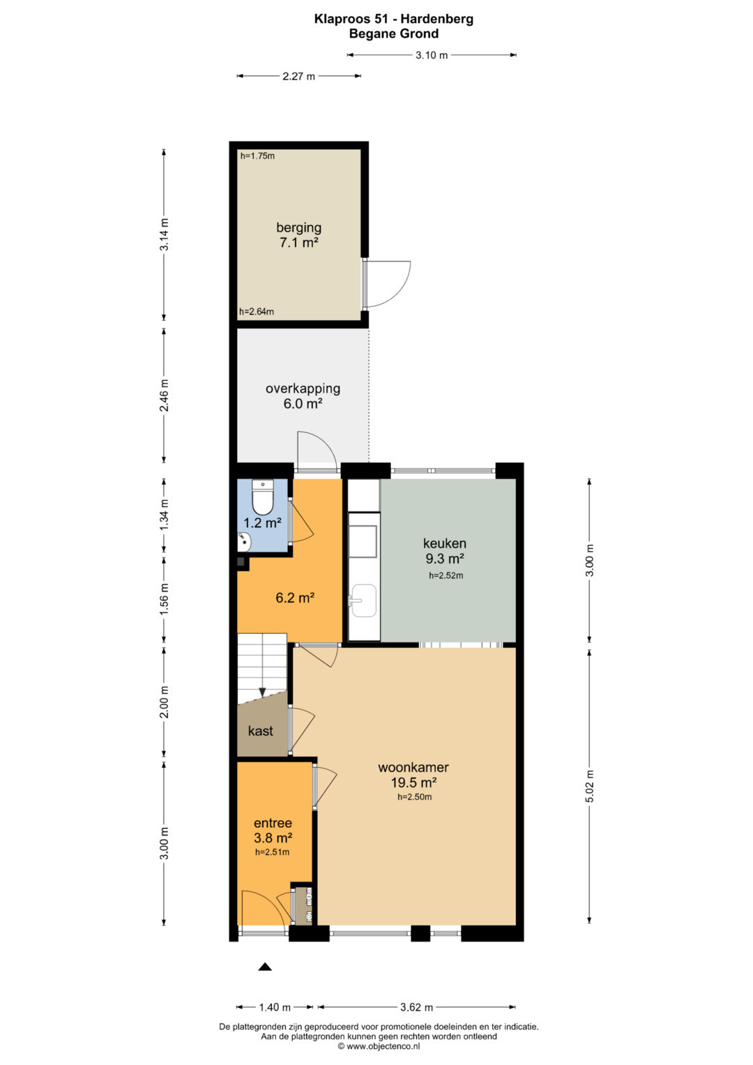 Entree/hal met meterkast, woonkamer, keuken met inbouwkeuken, achter portaal met toilet en vaste trapopgang naar de eerste verdieping.