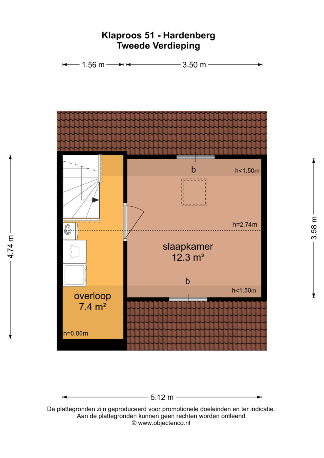Via een vaste trap bereikt u de royale zolderverdieping met een extra slaapkamer van circa 12 m². Dankzij het dakraam geniet deze kamer van veel natuurlijk licht.