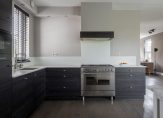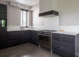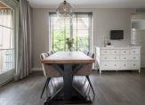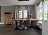 De woonkeuken van 20 m² is voorzien van een L-vormige inbouwkeuken. Het natuurstenen aanrechtblad is ruim bemeten en voorzien van een RVS spoelbak. Naast vloerverwarming, vaatwasser, combimagnetronoven, koel-vriescombinatie en een afzuigkap beschikt de keuken over een losstaande 5-pits gaskookplaat met oven. Vanuit de keuken is middels dubbele tuindeuren de serre te bereiken. De serre is voorzien van glazen schuifwanden.
