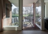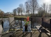 Het hart van het appartement is het ruime, deels overdekte balkon van ongeveer 12 m². Dit balkon biedt een prachtig uitzicht op de groene, bosrijke omgeving en het water voor het appartement. Door de zonnige ligging is het balkon een heerlijk zonnig terras.