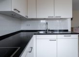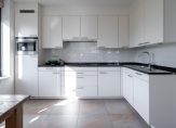 Het open keukendeel (7 m²) is uitgerust met een luxe inbouwkeuken in een hoekopstelling, voorzien van een granieten aanrechtblad met een rvs spoelbak. De keuken is verder compleet met de volgende inbouwapparatuur: een elektrische kookplaat, een koelkast met vriesvak, een combioven en een vaatwasser.