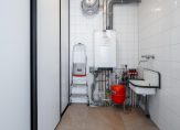 De inpandige berging (4 m²) biedt ruimte voor de Cv-ketel (Intergas HR 2009), de wasmachine en wasdroger. Daarnaast is er een vaste kast (3 schuifdeuren), de mechanische ventilatie box, de verdeler voor de vloerverwarming en het expansievat.