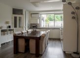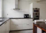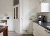 De keuken is uitgerust met een moderne inbouwkeuken (2015) in praktische hoekopstelling. Het kunststof aanrechtblad is voorzien van een RVS-spoelbak. Tot de inbouwapparatuur behoren een 10-liter close-in boiler, RVS afzuigkap, koel-vriescombinatie, oven, combimagnetron, vaatwasser en een 4-pits inductiekookplaat. Extra handig is de provisieruimte onder de vaste trapopgang. Daarnaast beschikt de keuken over een airconditioningunit die zowel kan verwarmen als koelen.