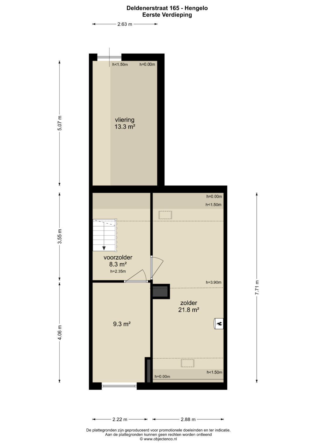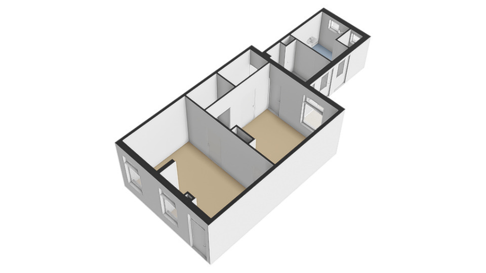 Overloop, een tweetal slaapkamers waarvan één met opstelplaats voor de Cv-ketel.