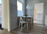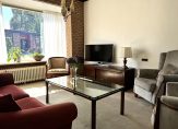 Aan de achterzijde is er uitzicht op de achtergelegen diepe tuin. Een grote vaste raampartij (loopt door tot aan de grond) zorgt voor veel licht in de gehele ruimte. Vanuit de woonkamer is er directe toegang tot de keuken.