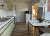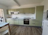 De keuken meet een oppervlakte van ongeveer 10 m² en is voorzien van een inbouwkeuken in lichtgroene kleurstelling. De afzuigkap, 4 pits Siemens-inductiekookplaat, vaatwasser en een zelfreinigende Siemens-oven zijn ingebouwd. De keuken beschikt in ruime mate over vaste kastruimte en er is plaats voor een kleine eettafel.