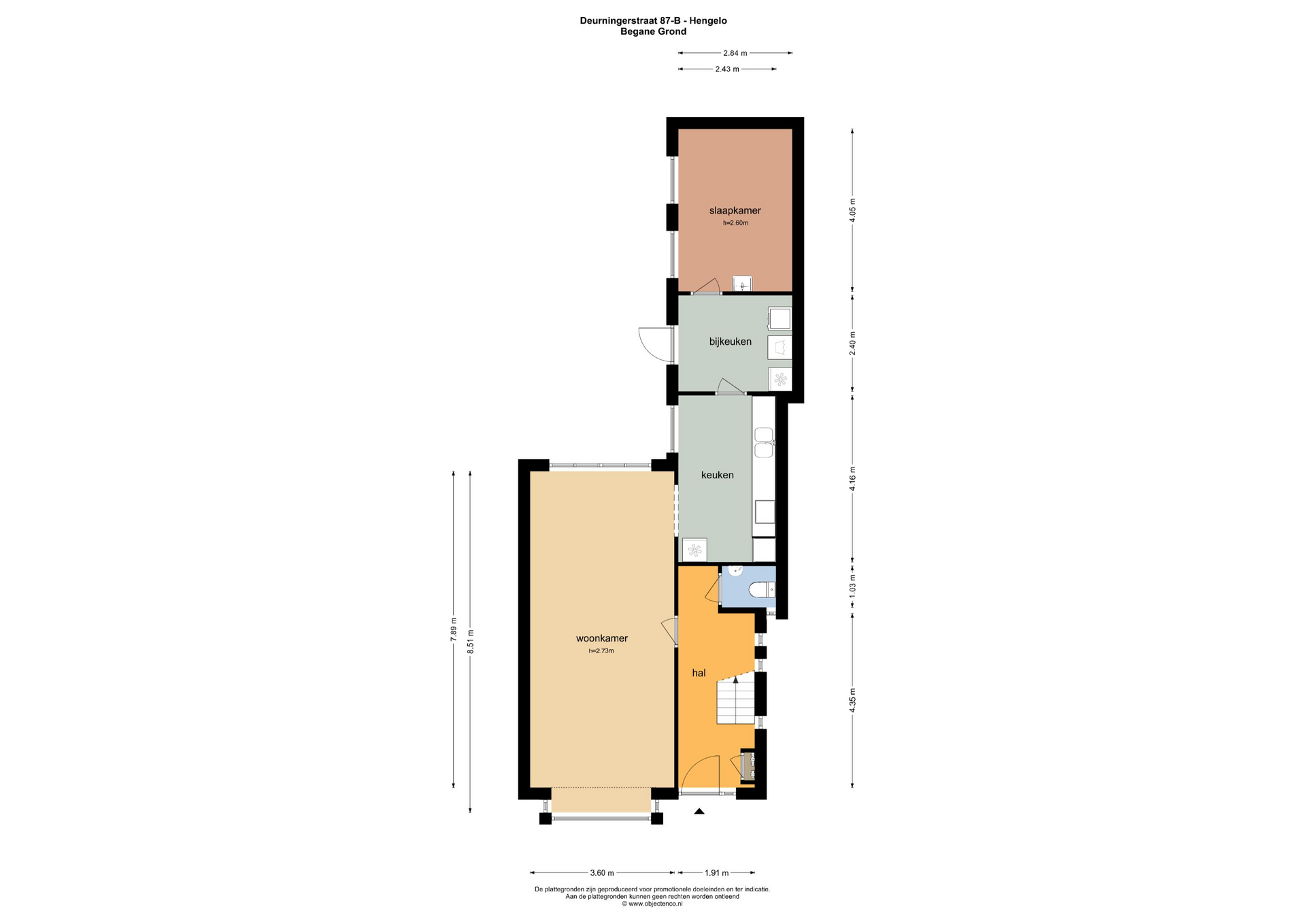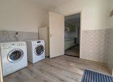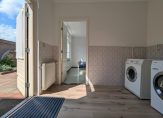 De bijkeuken heeft een aansluitpunt voor de wasmachine, wasdroger en vrieskast.