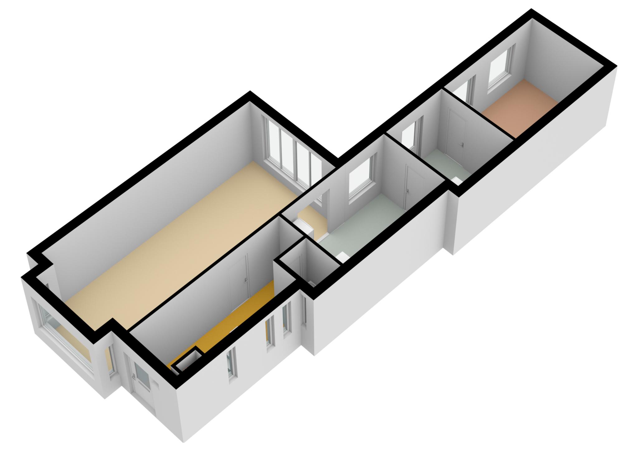 De slaap-/werk-/speelkamer heeft een oppervlakte van 11,5 m² en is de perfecte multifunctionele ruimte. U kunt hier een hobbykamer, speelkamer, slaapkamer maar ook een kantoorruimte voor het thuiswerken van maken of een combinatie hiervan. Twee grote ramen zorgen voor het nodige daglicht.