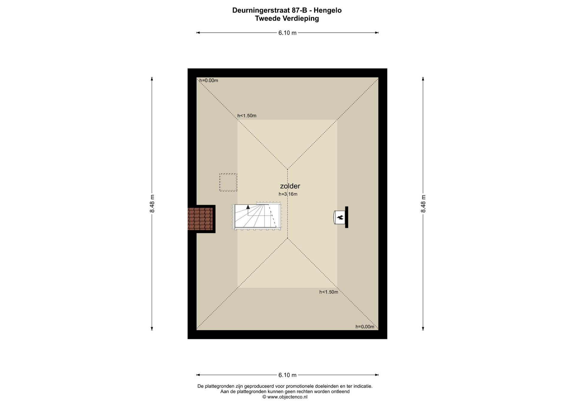 De tweede verdieping is bereikbaar via een vaste trap en biedt de mogelijkheid tot minstens een extra kamer.