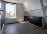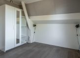 De slaapkamers meten circa 9, 9 en 8 m². De slaapkamers zijn alle drie voorzien van een laminaat vloer en triple glas. De slaapkamer aan de achterzijde is voorzien van een (sanitair)ruimte met toilet en wastafel. Deze ruimte is tevens te bereiken vanuit de overloop.