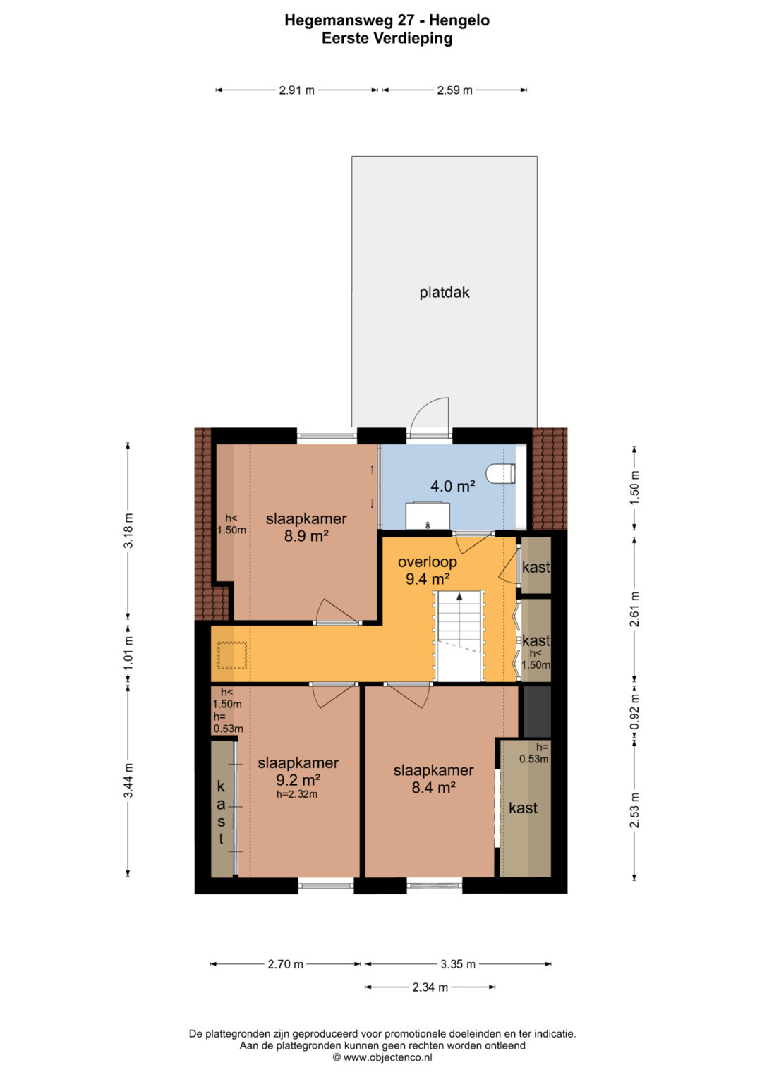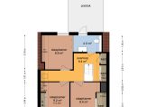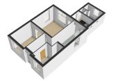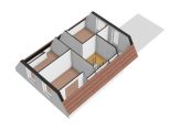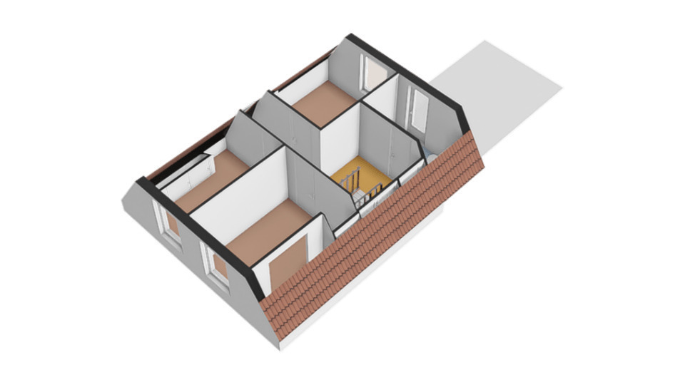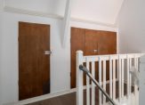 Overloop met drie slaapkamers en (sanitair)ruimte.