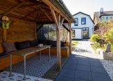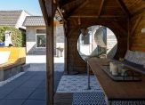 De fraai aangelegde achtertuin, gelegen op het oosten, biedt een combinatie van bestrating, groene borders, een overkapping en een zonnig terras waar u heerlijk kunt ontspannen. Achterin de tuin bevindt zich een vrijstaand stenen atelier/werkruimte welke volledig geïsoleerd is en voorzien van elektra, opslagruimte, werkbanken en een gezellige houtkachel. Deze multifunctionele ruimte leent zich perfect voor uiteenlopende doeleinden, zoals een werkplaats, kapsalon, kantoor, atelier of bijlesruimte.
