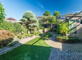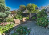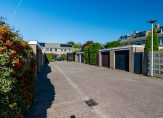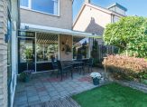 De achtertuin is gesitueerd op het oosten en is verzorgd aangelegd met een ruim terras, borders en diverse beplanting. Hier kunt u in alle rust genieten van de ochtendzon en het groen om u heen. Achter in de tuin bevindt zich een stenen garage van circa 20 m², voorzien van een stalen kanteldeur en elektra. Een fijne plek om te klussen, te bergen of om de auto veilig te parkeren.