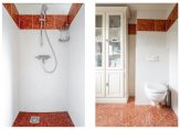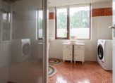 De volledig betegelde badkamer is voorzien van douchegelegenheid, toilet, twee wastafels en een radiator. Ventilatie geschiedt op zowel mechanische als natuurlijke wijze.