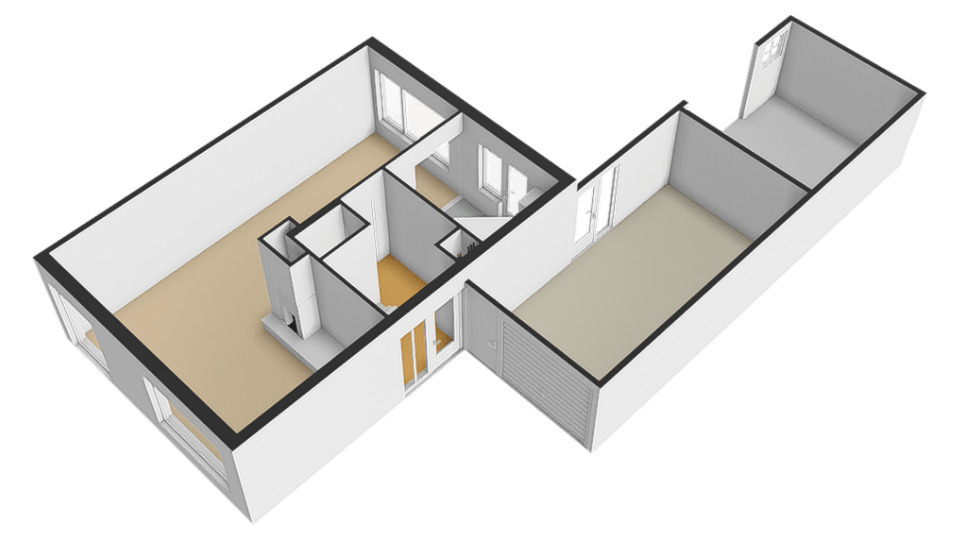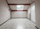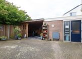 De garage meet een oppervlakte van circa 23 m² en is voorzien van elektra- en water aansluiting. Naast een stalen kanteldeur is de garage eveneens aan de voor- en zijkant voorzien van een loopdeur.