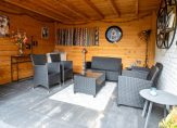 De op het zuidwesten gelegen achtertuin is voorzien van bestrating. Door de vrije zij- en achterkant van het perceel heeft u volop zon en veel privacy. Een royale veranda (circa 14 m²) biedt u zomers de nodige rust, privacy en schaduw. De perfecte plek om in het voor- of najaar tijdens de zomerdag optimaal te genieten van uw tuin onder het genot van een lekker glas wijn !