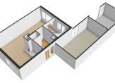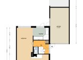 Entree/hal met toilet, meterkast en vaste trapopgang naar de eerste verdieping, woonkamer en keuken.