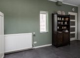 Een ideale ruimte om in alle rust te genieten van een goed boek, lekker glas wijn of om je gewoon even af te zonderen voor de televisie. Dit kan in het zitgedeelte wat voldoende groot is voor een ruimte zithoek of in het eetgedeelte waar plek is voor een royale eettafel. De openslaande tuindeuren, in het eetgedeelte, zorgen ervoor dat u zowel in het voor- als najaar optimaal kunt genieten van de achtergelegen tuin. Het ‘buiten leven gevoel’ komt zo wel maximaal tot z’n recht. Tevens is het eetgedeelte voorzien van twee vaste kasten.