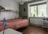 Overloop met een vaste kast, drie slaapkamers en de badkamer. De slaapkamers meten oppervlaktes van circa 17, 12 en 10 m². De ouderslaapkamer is voorzien van vaste kastruimtes en geeft toegang tot het balkon, middels een openslaande deur. De slaapkamer aan de achterzijde van de woning beschikt over een vaste kast en een wastafel.