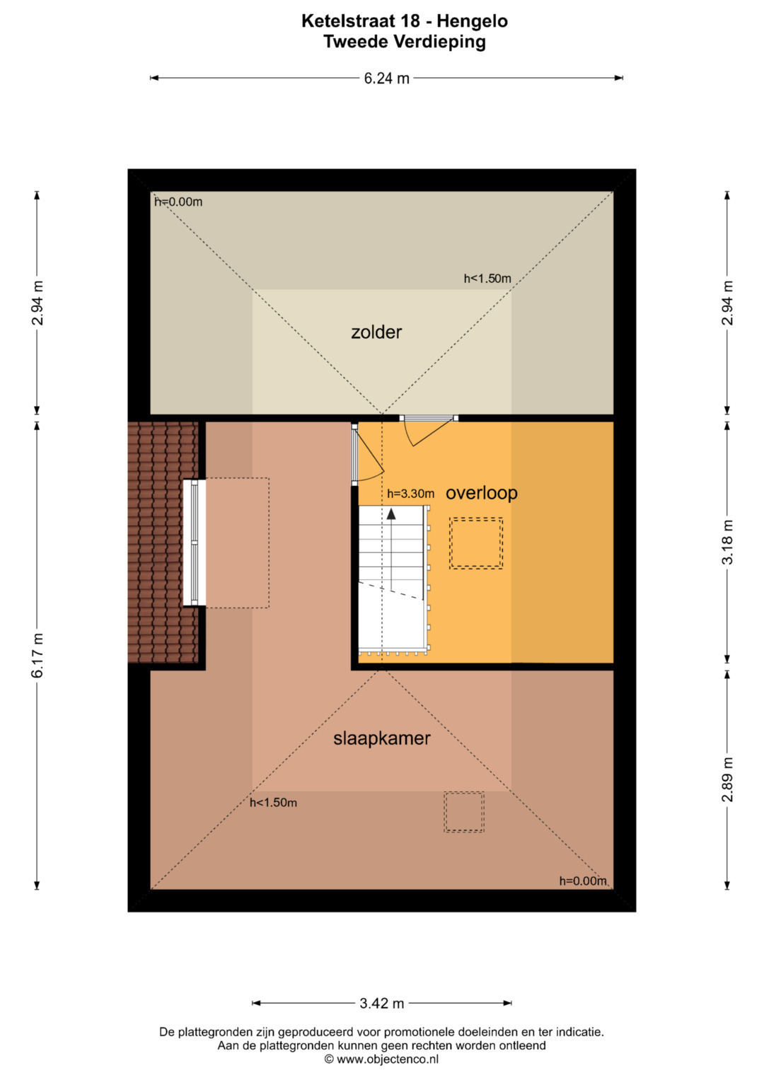 De tweede verdieping is bereikbaar via een vaste trap en biedt u thans een extra kamer, welke uitermate geschikt is als werk-, slaap- c.q. hobbykamer. Daarnaast vindt u hier de nodige bergruimte en is er daglicht voorziening middels een tweetal dakvensters en een dakkapel.
