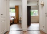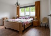 De drie ruime en lichte slaapkamers meten respectievelijk 15, 11,5 en 9,5 m². Alle slaapkamers zijn voorzien van een pvc vloer. Daarnaast beschikt één slaapkamer over vaste kastruimte (waarachter thans de opstelplaats voor de wasmachine en wasdroger) en één slaapkamer over een openslaande deur naar het buitenterras.