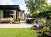 Vast aan de garage een speciaal daarvoor afgetimmerde Veranda van circa 13 m² met volop plek voor een royale zit. De ideale plek om volop te genieten tijdens de lange zomeravonden!