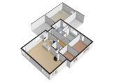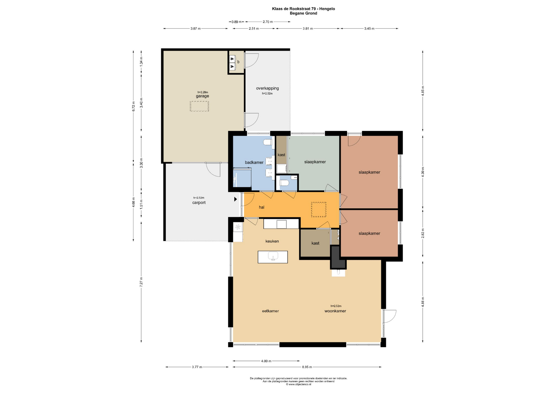 Overdekte entree, hal met toilet, drie slaapkamers, badkamer, inpandige berging (met meterkast), keuken en de woonkamer.