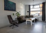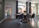 De living aan de achterzijde meet een oppervlakte van circa 18 m². Ook hier straalt het geheel een warme sfeer uit. Naast fraaie details die het geheel zo compleet en courant maken, is er voldoende ruimte voor het plaatsten van een royale eethoek.