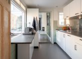 Vanuit de keuken is het achter portaal te bereiken, welke rechtstreeks toegang geeft tot het toilet en de ‘natte ruimte’ met aansluitingen voor wasmachine en wasdroger.