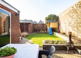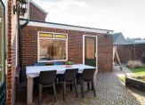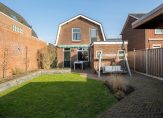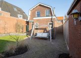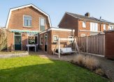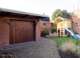 De achtertuin is gesitueerd op het zuiden en aangelegd met sierbestrating, borders en gazon. Het ultieme plekje om, met een lekker glas wijn, te genieten van de ondergaande avondzon. Achter in de tuin een stenen garage van 15 m² (met elektra aansluiting en kanteldeur) evenals een stenen berging van 15 m² (met water- en elektra aansluiting). Beide zijn gebouwd in spouw.