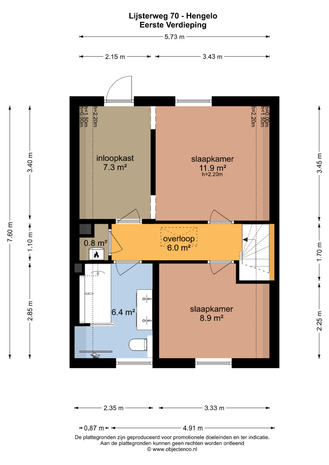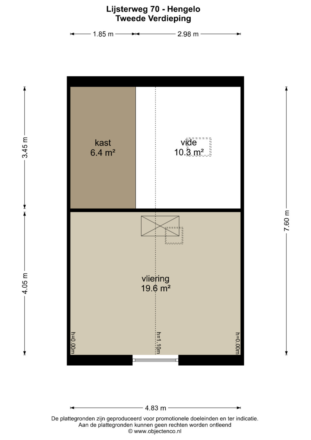 De inloopkast meet een oppervlakte van ruim 7 m² en is eenvoudig weer om te bouwen tot slaapkamer (de toegangsdeur vanaf de overloop zit er nog, enkel de wand tussen beide slaapkamers dient opnieuw gedicht te worden).