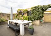 De onderhoudsvriendelijke tuin is gelegen op het westen en is aangelegd met bestrating en diverse borders. In de tuin een stenen berging welke beschikt over dubbele beglazing, muur- en dakisolatie. De berging meet een oppervlakte van 10 m² en is voorzien van elektra. Tevens bevinden zich hier de aansluitingen voor de wasmachine en wasdroger. De tuin is via de zijkant van het woonhuis toegankelijk.