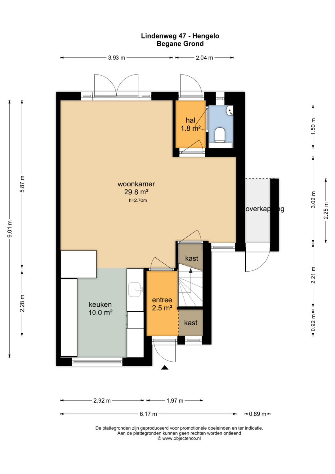 Entree/hal met meterkast, garderobe en vaste trapopgang, keuken, woonkamer met toegang tot de kelder, achter portaal met toilet.