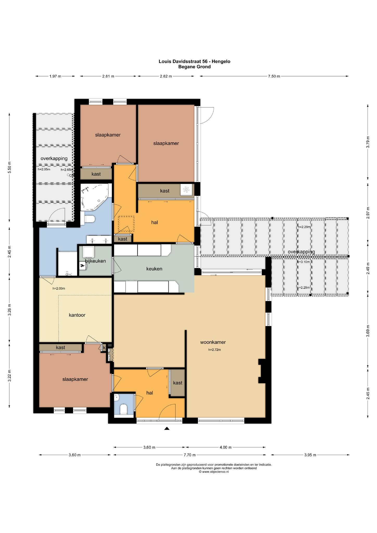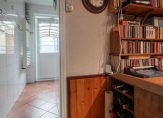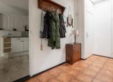 Entree/hal met meterkast, garderobenis, toilet, kantoorruimte, drie slaapkamers, badkamer, woonkamer, keuken en een kleine bijkeuken waar zich tevens de Cv-installatie bevindt.