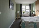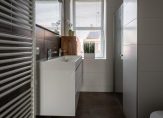 De courante badkamer is geheel betegeld en uitgevoerd in moderne kleurstelling. Als bewoner beschikt u over een dubbel wastafelmeubel, hangend toilet, inloopdouche en een designradiator. Ventilatie geschiedt op zowel mechanische als natuurlijke wijze.