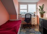 Overloop met een drietal slaapkamers en de badkamer. De slaapkamers meten oppervlaktes van ruim 14, 12 en 7 m² en zijn allen voorzien van een PVC vloer en draai-/kiepramen. Daarnaast hebben de ouderslaapkamer en de kleinste kamer de beschikking over vaste kasten.