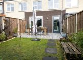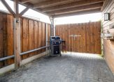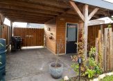 De tuin is gelegen op het zuidoosten en verzorgd aangelegd met bestrating, gazon en borders met beplanting. Achter in de tuin bevindt zich de overkapping/carport met aangelegen houten berging van 6 m² met elektra aansluiting.