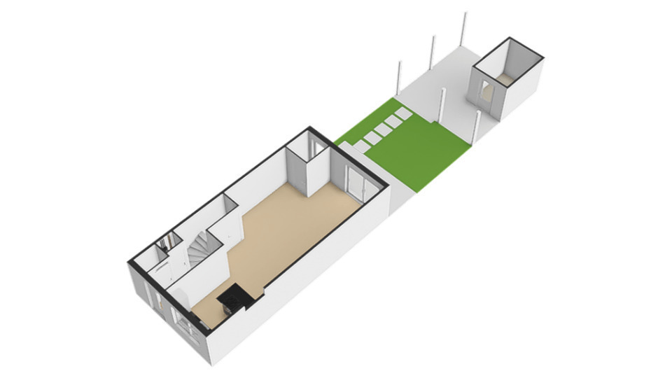 Op deze verdieping bevindt zich tevens de wasruimte met aansluitingen voor de wasmachine en droger, evenals de opstelplaats voor de cv-ketel.