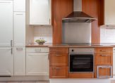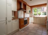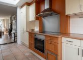 Grenzend aan de woonkamer, de keuken van maar liefst 11 m² met inbouwkeuken, welke is voorzien van diverse inbouwapparatuur waaronder een 4-pits keramische kookplaat, afzuigkap, koel-vriescombinatie, magnetron, oven en vaatwasser. Het geheel is uitgevoerd in lichte kleurstelling met een houten aanrechtblad waarin verwerkt een RVS spoelbak met groentespoel.
