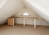 Via een vaste trap heeft u toegang tot een volledige open ruimte. Hier kunt u een werkruimte, slaapkamer en/of bijvoorbeeld een extra leefruimte creëren. De zolder heeft volop daglicht door de aanwezige dakramen.