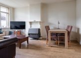 De woonkamer meet een oppervlakte van circa 18 m² en via dubbele openslaande deuren is er toegang tot de aan de woning vast gebouwde overkapping en tuin.