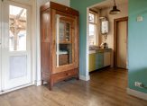 De keuken is klein en voorzien van een eenvoudig keukenblok inclusief servieskast.