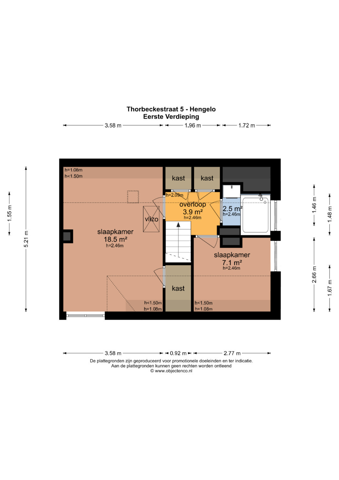 Overloop met bergruimte en een tweetal slaapkamers van afgerond 18,5 en 7 m². De ouderslaapkamer heeft de beschikking over vaste kastruimte.