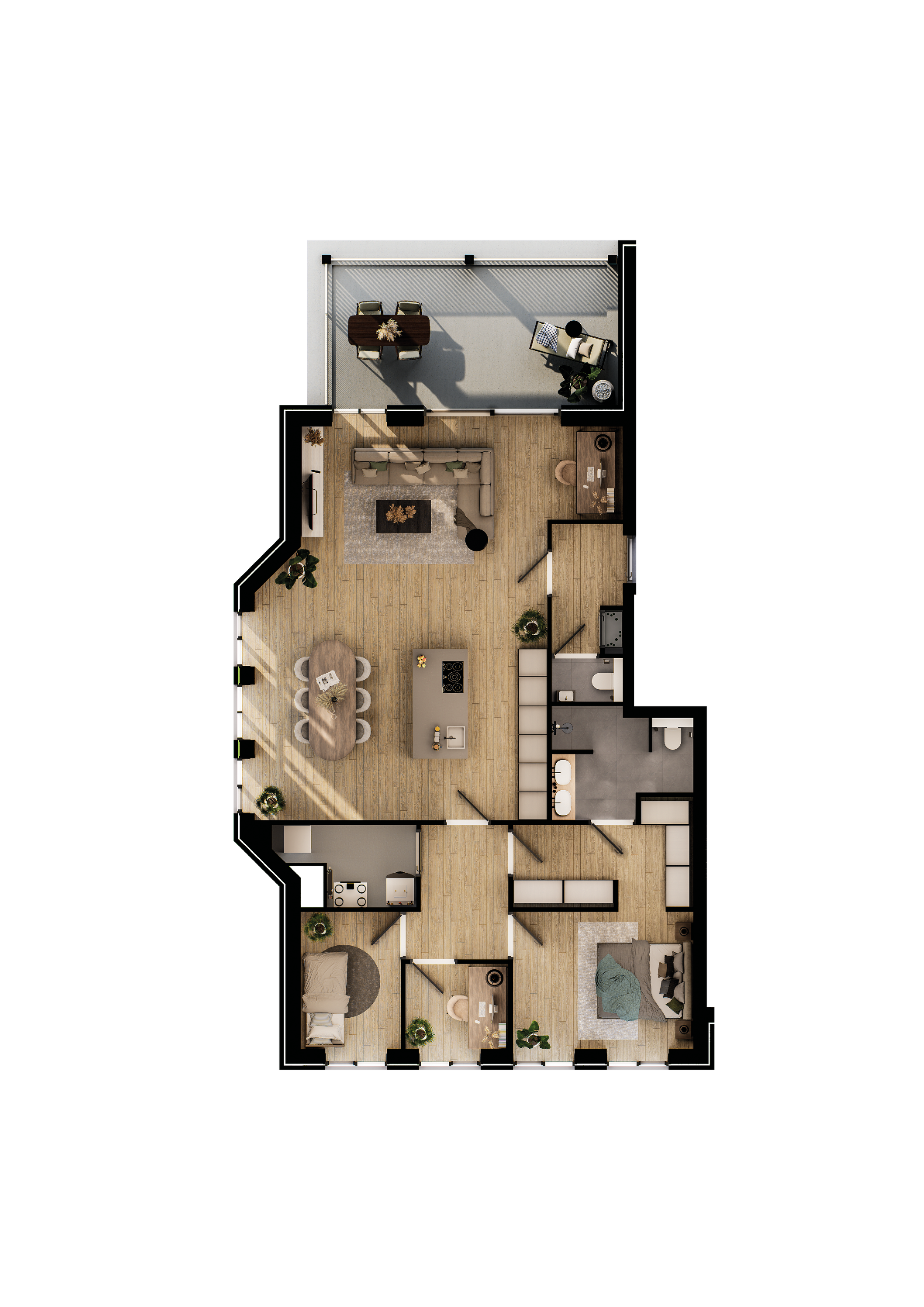 * Het appartement heeft de mogelijkheid tot een indelingsvariant: Hotel chique