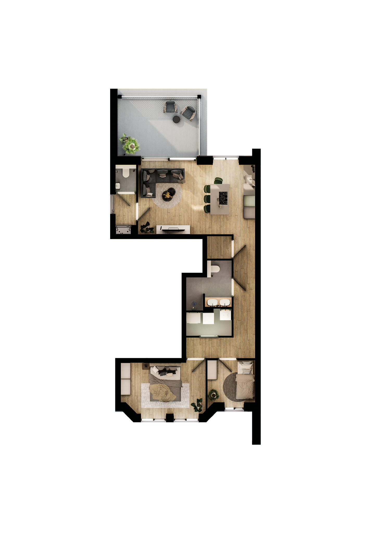 De moderne badkamer is naar je eigen smaak ingericht, de ruimte, je royale douche en de dubbele wastafel geven je het gevoel van een hotel chique allure. Je eerste koffie van de dag maak je in je eigen keuken met kookeiland waar je gisteren nog met vrienden gezellig gekookt hebt. De zon lokt je naar je balkon op het zuiden waar je door het privacy scherm heerlijk van de eerste zonnestralen op je mooie beschutte terras kunt genieten. Je kijkt uit over de stad en het groen van de Drienerbeek, heerlijk rustig en toch middenin de stad.