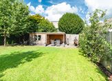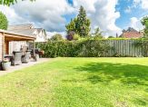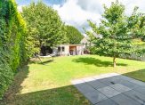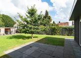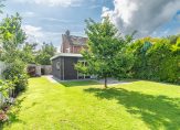 De achtertuin biedt optimale privacy en is sfeervol aangelegd met bestrating, borders, beplanting en een verzorgd gazon. Bovendien beschikt de tuin over een houten berging met overkapping, ideaal voor het opbergen van tuinspullen of als gezellige plek om van het buitenleven te genieten.