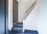 Hal met meterkast, toilet, trapopgang naar de eerste verdieping, woonkamer met provisiekast, woonkeuken en de toegang tot de bijkeuken.